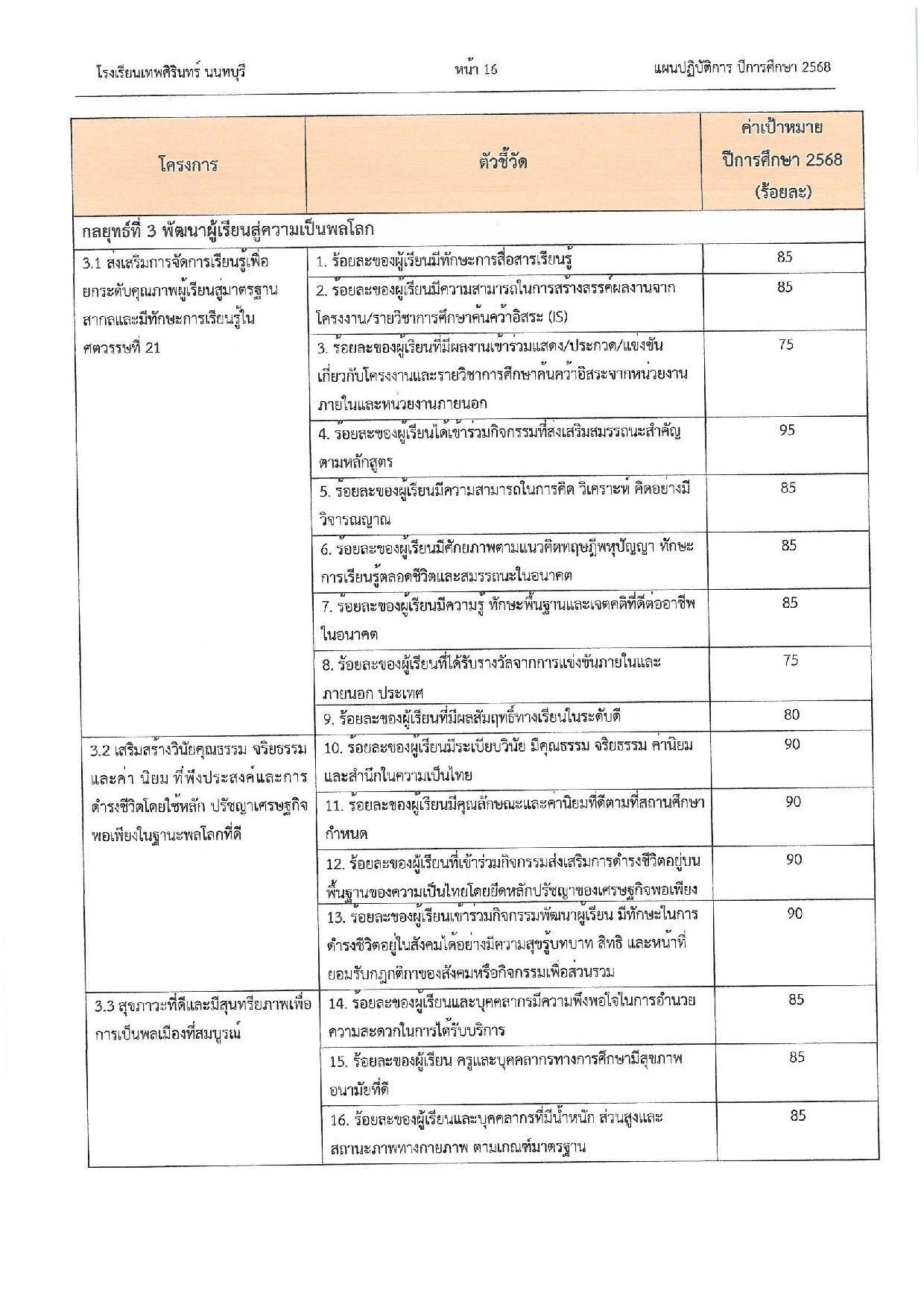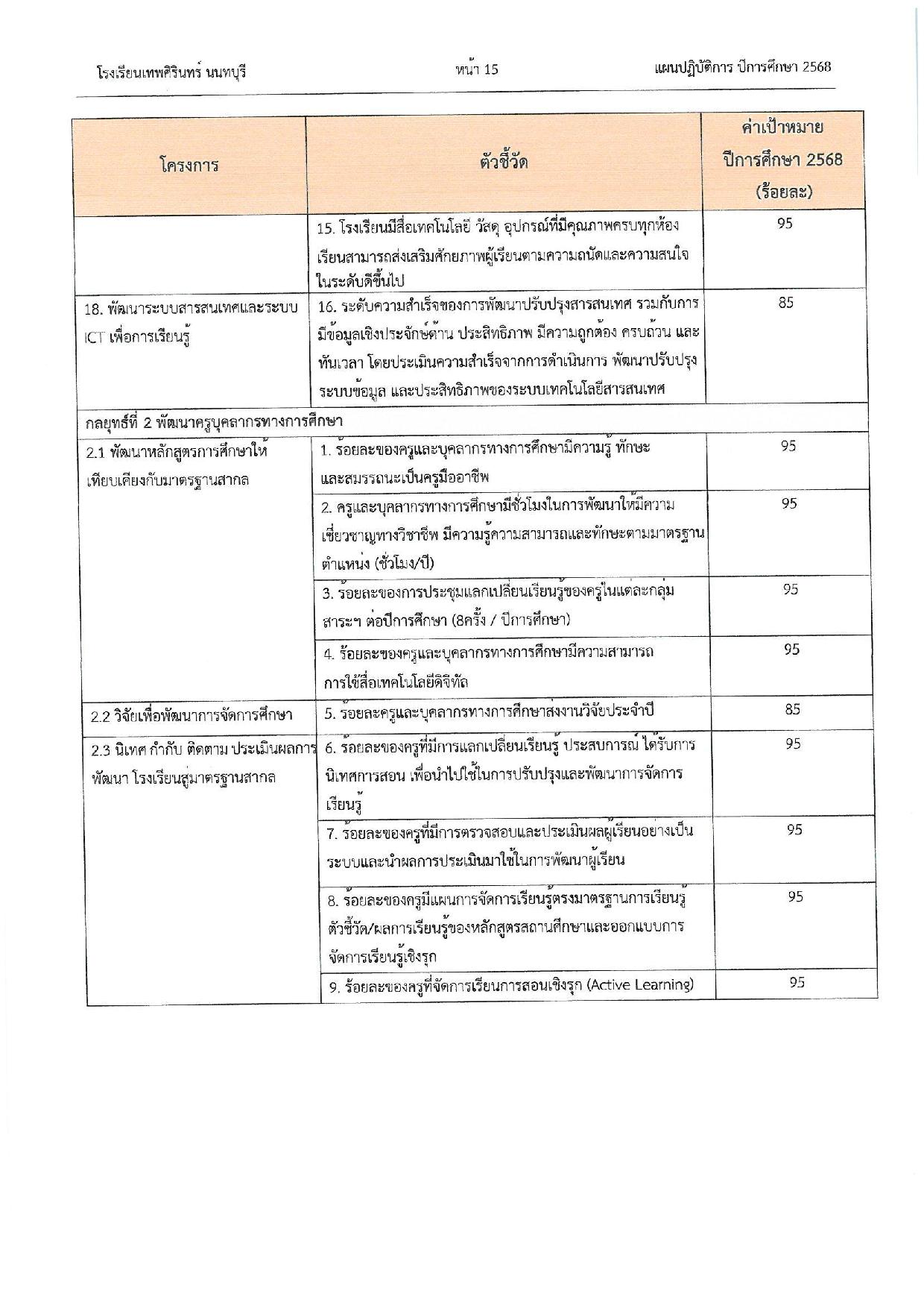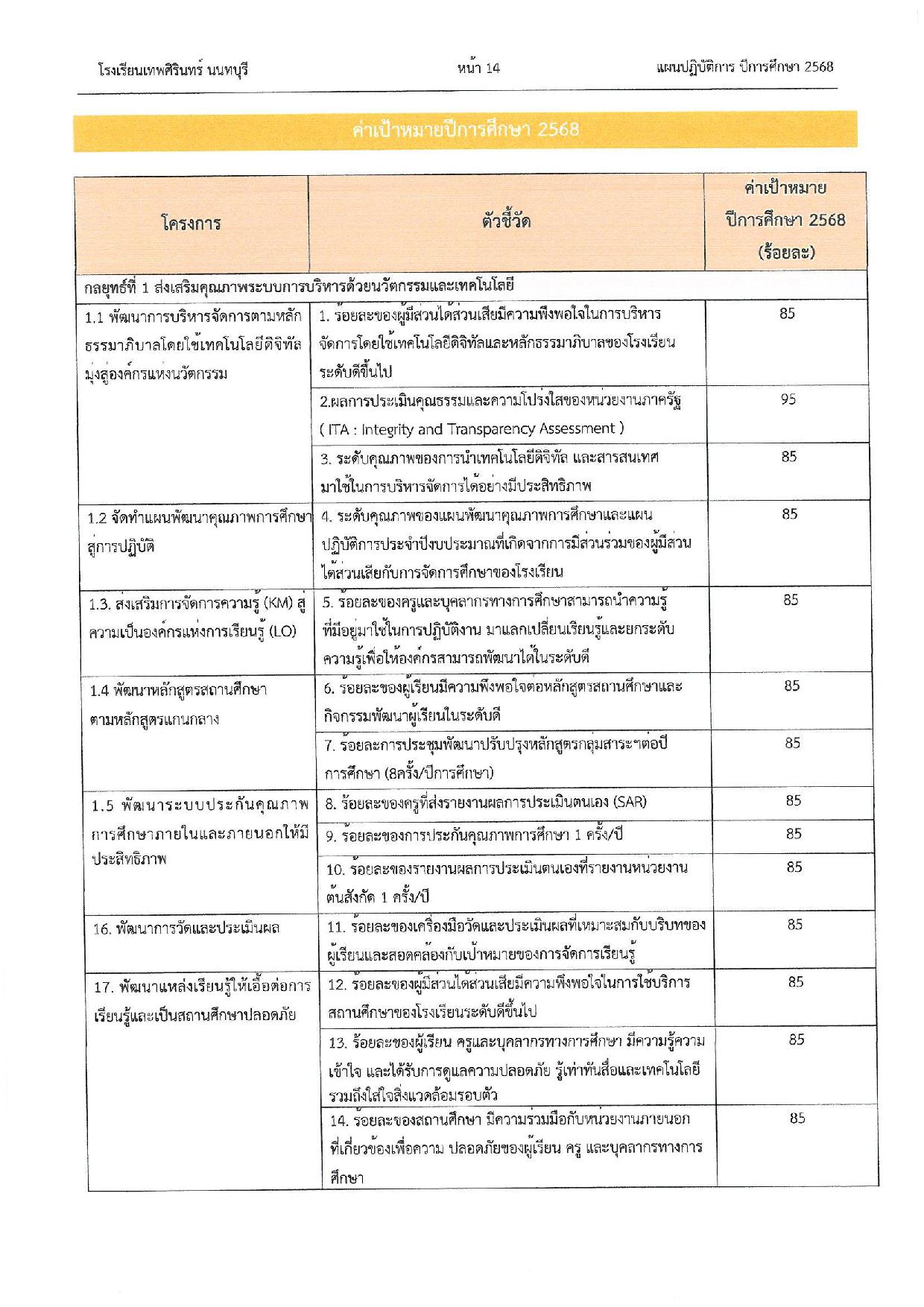 แผนปฏิบัติการ โรงเรียนเทพศิรินทร์ นนทบุรี